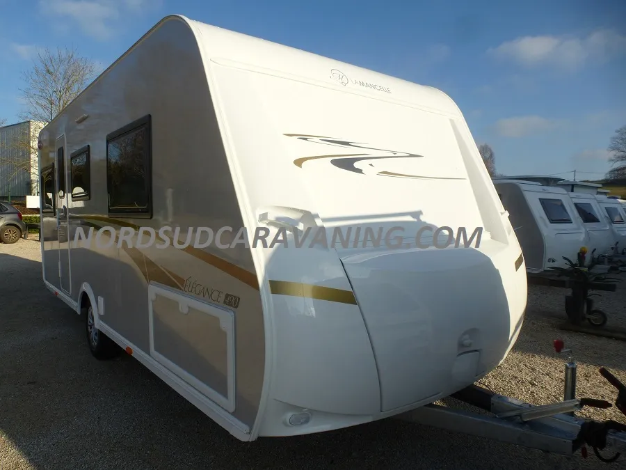Jolie caravane d’occasion La Mancelle 490 SA le meilleur agencement en Lit Central avec Salon en U, 1ère main, Grand frigo, Truma Combi 4…